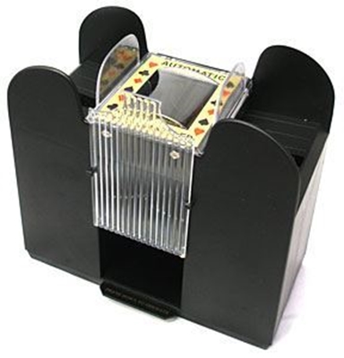This automatic card shuffler is battery operated (not included) can shuffle up to 6 decks of playing cards. Mixture of standard cards and bridge cards.